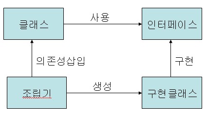 ex) A클래스에서 B클래스를 직접 생성하면, B를 C로 바꿀 경우 A의 코드를 수정해야 한다.