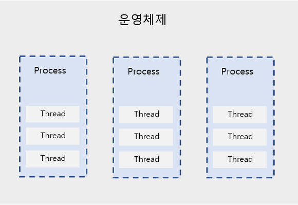 - 기본적으로 프로세스당 최소 1개의 스레드를 가진다.