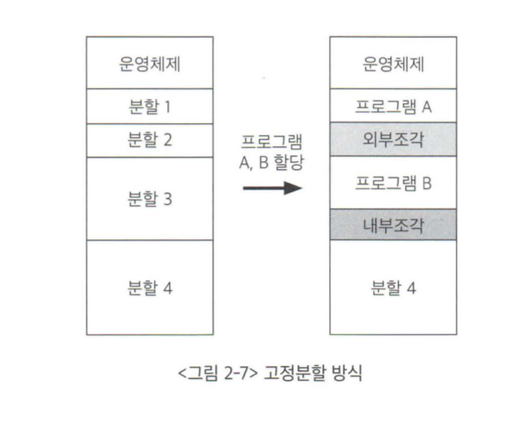 또한 고정분할 방식은 외부조각과 내부조각 문제가 발생할 수 있다.