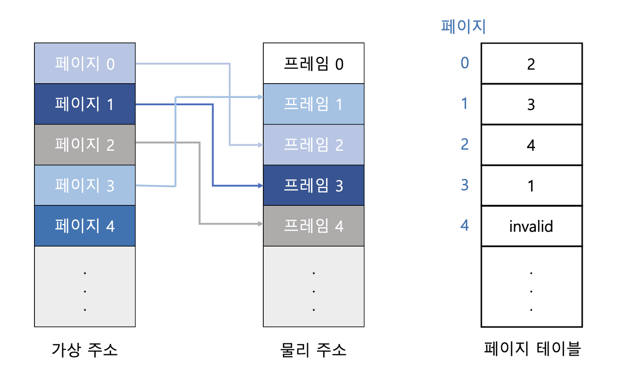 물리 메모리의 각 영역은 가상 주소의 페이지와 구분하기 위해 프레임이라고 부르고,