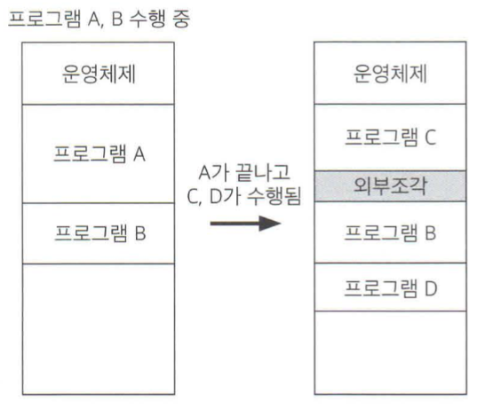 따라서 가변분할 방식은 프로그램의 크기를 고려해서 메모리를 할당하고 이를 관리할 수 있는 기법이 필요하다.