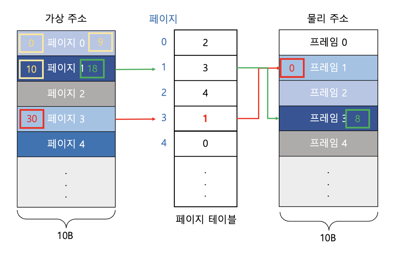 EX1 ) 프로세스가 30번지의 내용을 읽으려고 할 때 (페이지의 크기 10B라고 가정)