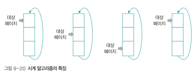 - 대상 포인터는 메모리가 꽉 찰 경우 스왑 영역으로 쫓아낼 페이지를 가리킨다.
