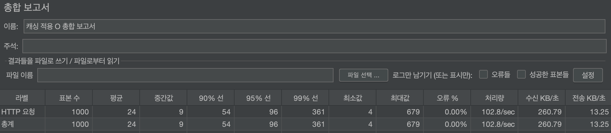 캐싱 적용으로 평균 응답 시간은 약 96% 감소되었습니다.