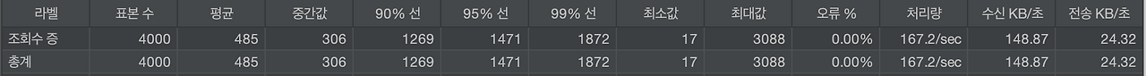 평균 응답 시간 1022ms → 485ms 약 53% 감소