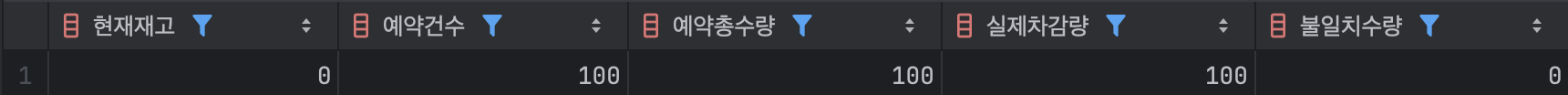그 결과 재고는 정확히 100개만 차감되었고, 기존에 발생했던 정합성 문제는 해결됐다.