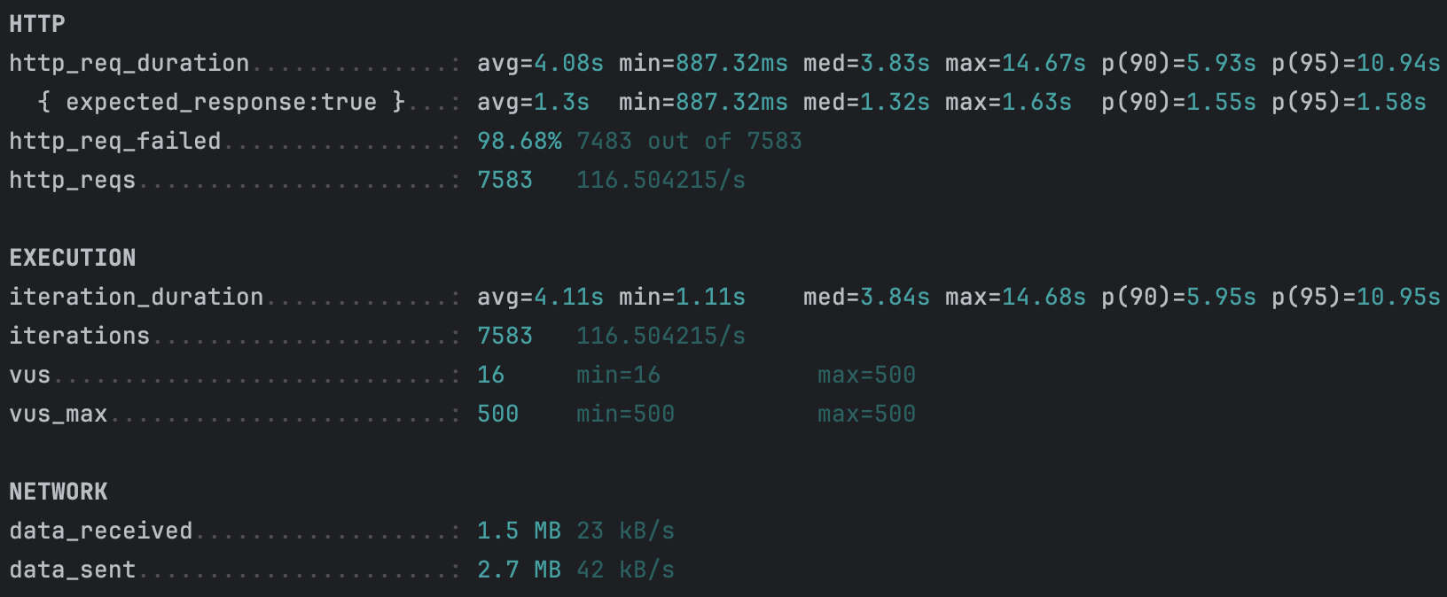 또한 이번에는 JMeter 대신 k6를 선택했는데, Grafana와 연동해 지표를 함께 볼 수 있다는 점이 큰 이유였다.